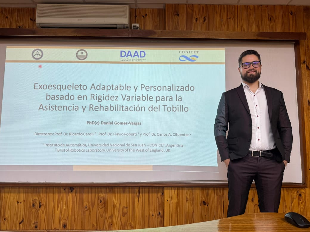El Instituto de Automática (INAUT, CONICET–UNSJ) informa la finalización de una nueva tesis doctoral, correspondiente al Magíster Ing. Daniel Alejandro Gómez Vargas, quien se convierte en el quinto doctor egresado del instituto durante el presente año, consolidando un importante hito para la formación de recursos humanos altamente especializados.
