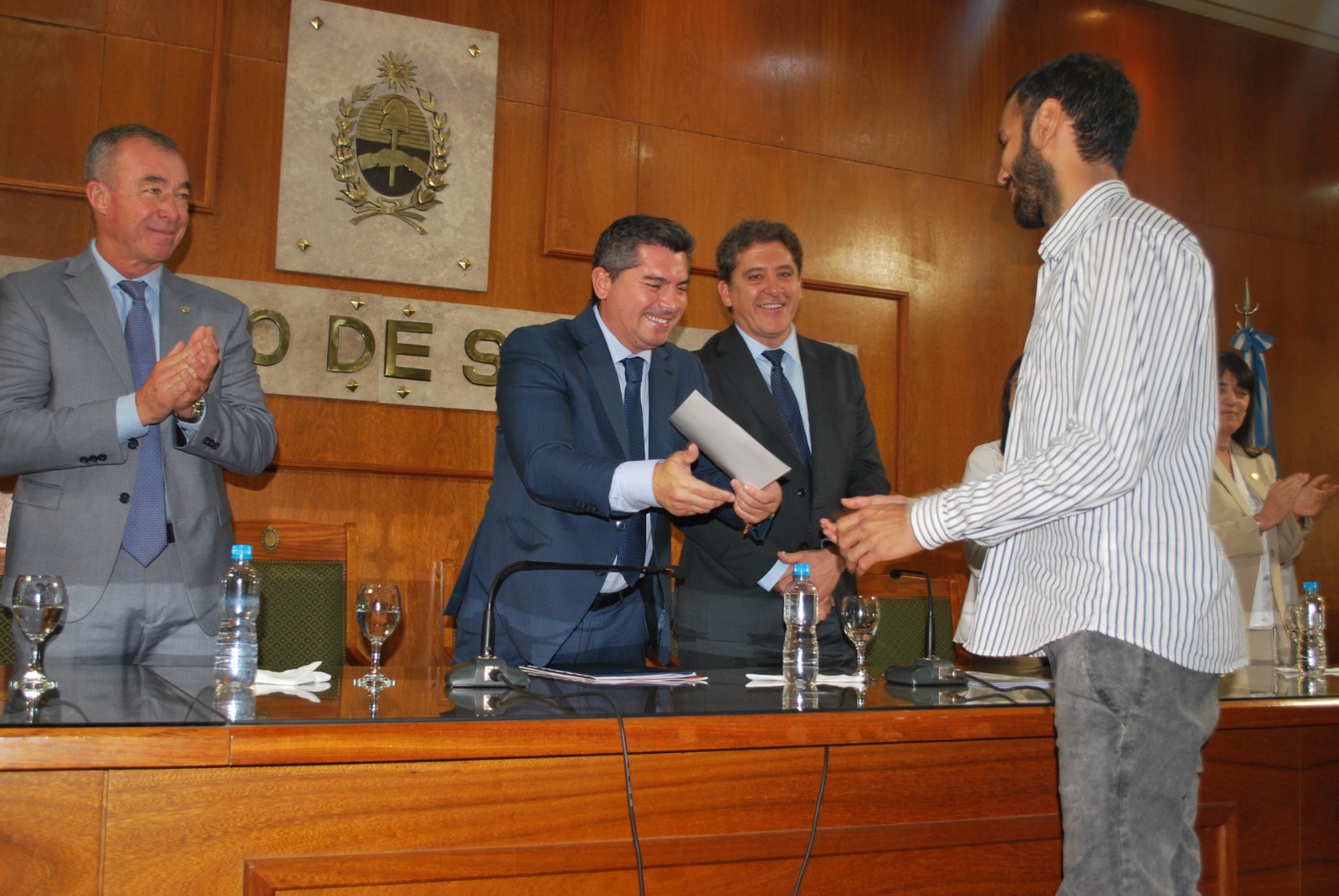 El Dr. Ing. Juan Abel Gómez, becario postdoctoral del Instituto de Automática (INAUT, CONICET-UNSJ), fue distinguido con una mención honorífica en la duodécima edición del Premio Domingo Faustino Sarmiento por su trabajo sobre monitorización y optimización del riego en cultivos. La entrega se realizó el 20 de octubre en un acto encabezado por el gobernador y autoridades provinciales.